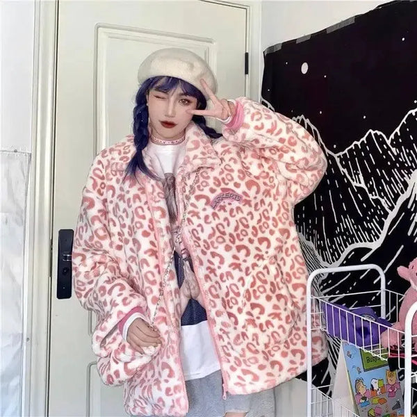 韓国版ピンク・ラムウール中わた入り防寒コート