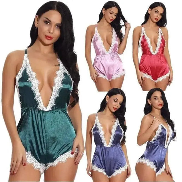 - ランジェリーサテンレースパジャマは、バッククロスデザインが特徴です。
