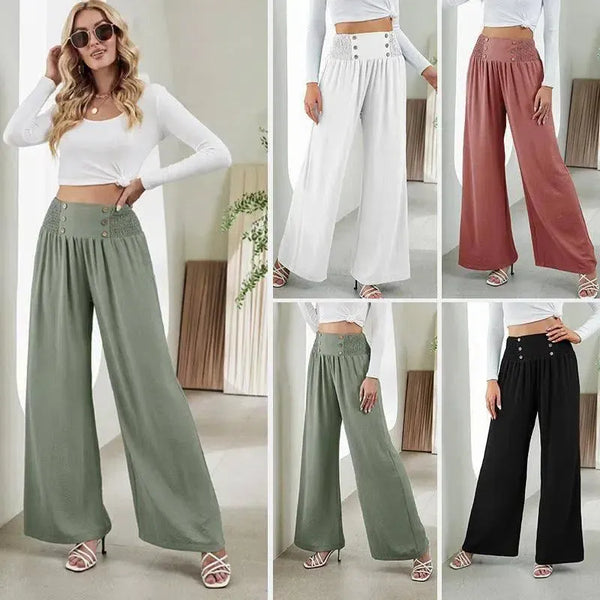 ファッションストレートワイドパンツ弾性ハイウエストカジュアルパンツ女性用