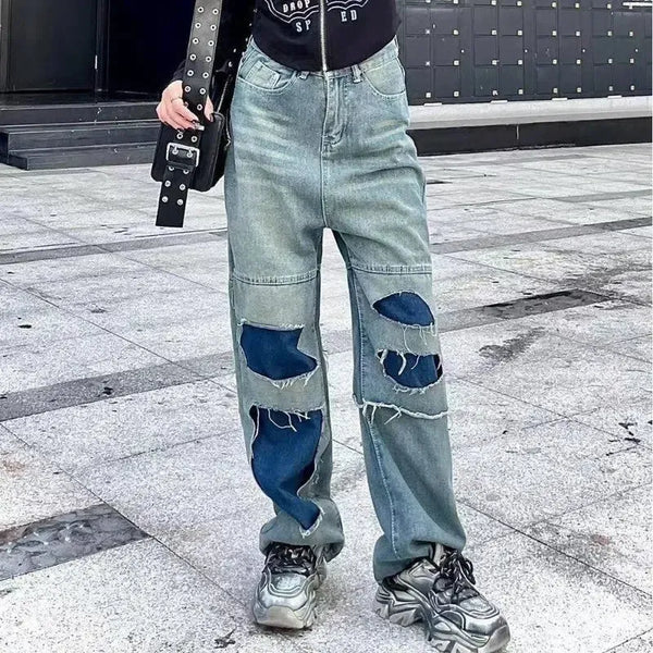 商品の説明:女性のストレートパンツは、ステッチジーンズを細く裂いた