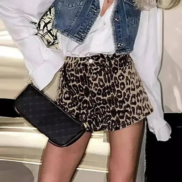 Aoaiys ヒョウ柄ショートパンツ レディース デニム ショートパンツ カジュアル