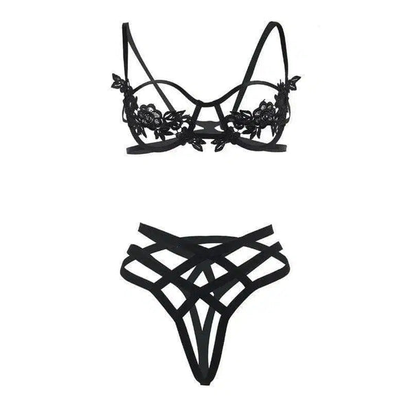 - スタイル:シックなランジェリーアンサンブル デザイン: 3点セット デザイン 含まれるもの: ブラジャー、ガーターベルト、お揃いのTバック