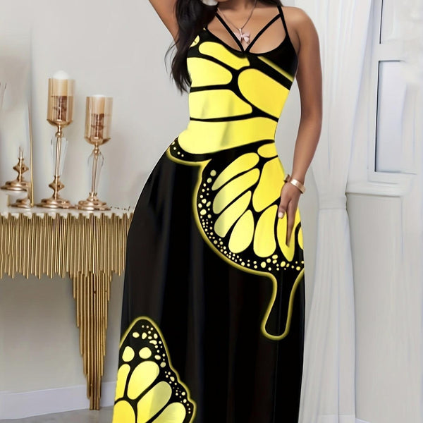 Step into elegance with our Ladies' V-Neck Butterfly Print Maxi Dress , a stunning blend of sophistication and comfort. This long black skirt dress features a beautiful butterfly print design that adds a whimsical yet chic touch to your wardrobe. Perfect for any occasion, this dress is designed to make you feel confident and stylish.