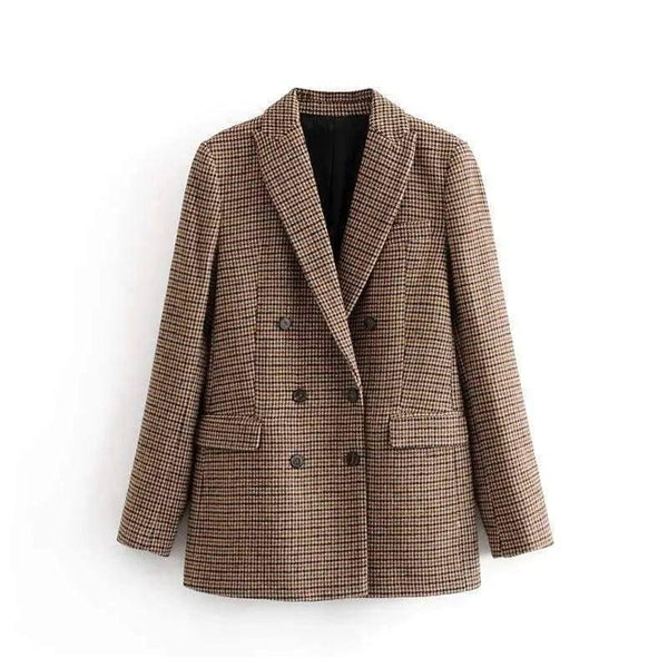 レディース秋冬カジュアルダブルブレストチェック柄