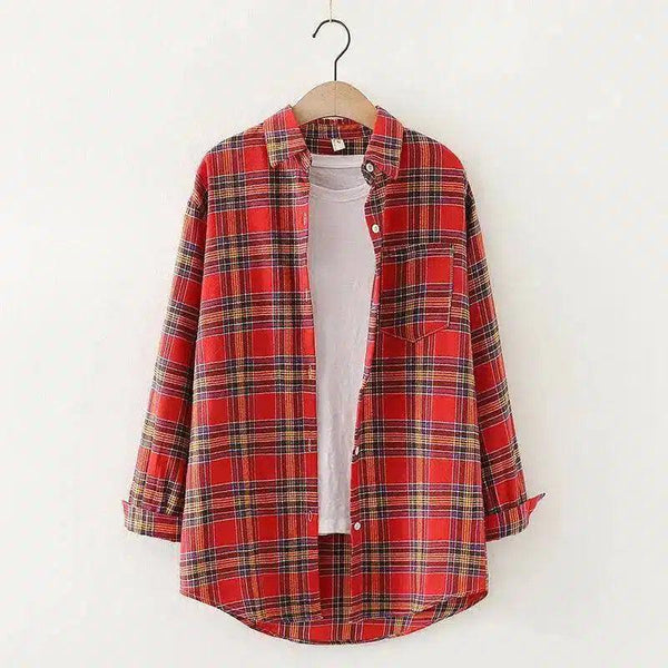 チェック柄長袖カジュアルシャツ