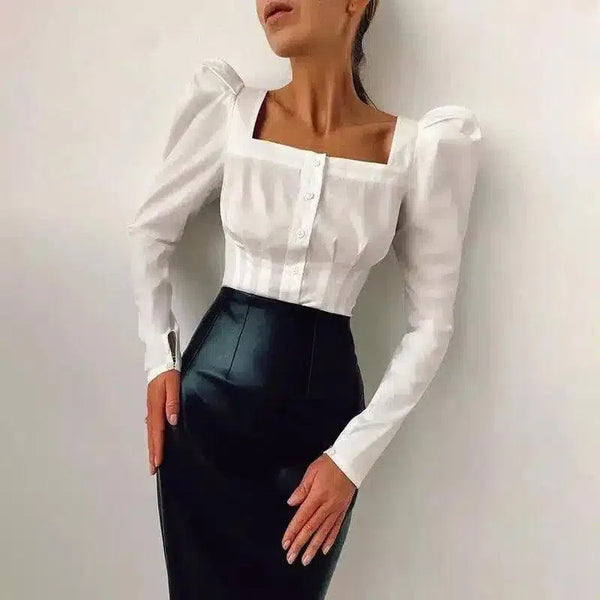 - フィット感: ボタンダウンフロントでフィット その他の特徴: 袖口がフィットしたパフショルダー