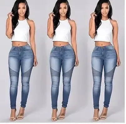 女性用ストレッチスリムひだステッチ足ジーンズペンシルパンツ