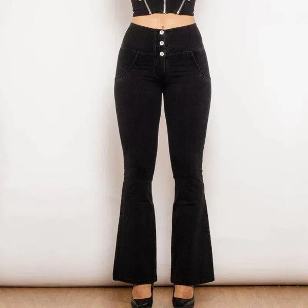 シャスカルファイツ メロディ・ブラック フレア・リフト・ジェギンス ボタンアップ