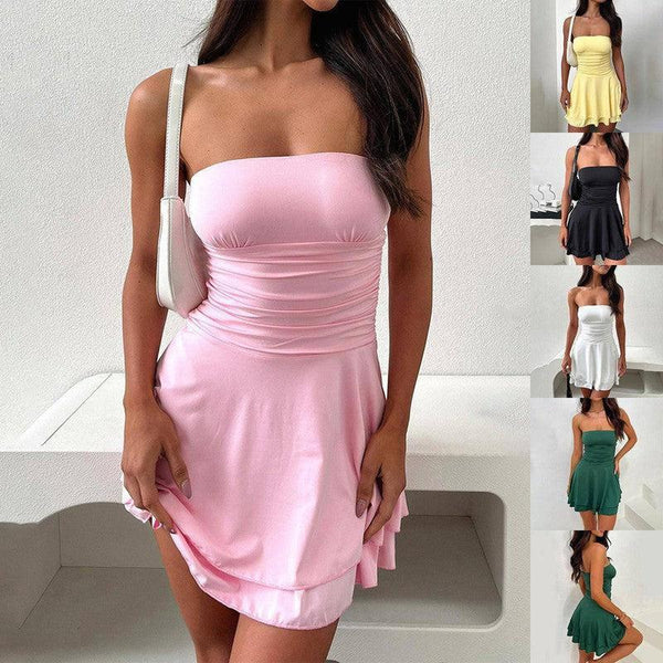 Y2K チューブトップショートドレスサマープリーツタイトドレス